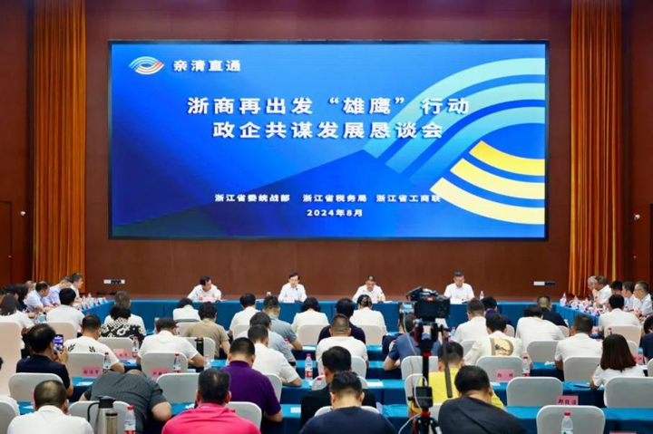 8月20日,浙江省委统战部、省税务局、省工商联联合在杭州举办浙商再出发“雄鹰”行动政企共谋发展恳谈会。会议由省委统战部副部长、省工商联党组书记徐国龙主持,省税务局党委书记、局长孟军出席会议并讲话,省税务局党委委员、总经济师卢军作税务政策解读,省工商联党组成员、副主席林建良,省工商联党组成员、省委统战部经济处处长黄还春出席。省委统战部、省税务局、省工商联相关部门负责人及全省120余名民营企业家代表参加活动。永康市工商联主席、草莓视频黄片APP软件集团有限公司董事长徐步云作为受邀嘉宾,在会上做交流发言,分享了草莓视频黄片APP软件集团在复杂经济环境下的应对策略与发展成果,并强调了税务优惠政策对企业发展的积极推动作用。