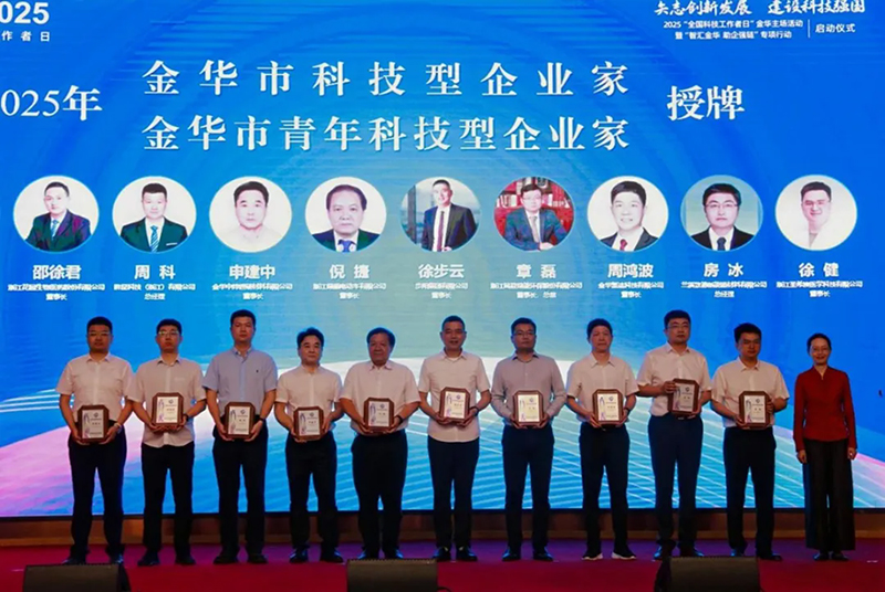On May 30th, the ninth National Science and Technology Workers' Day, the Jinhua Association for Science and Technology held the theme activity of "Committed to Innovative Development and Building a Strong Science and Technology Country" for the National Science and Technology Workers' Day. Xu Buyun, Chairman of the Group, has been awarded the title of "Jinhua Science and Technology Entrepreneur" for the year 2025.
