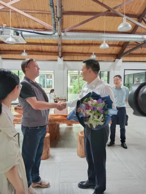Wang Haitao, Deputy Secretary of Yongkang Municipal Party Committee, led relevant department heads to visit and comfort representatives of foreign scientific and technological workers of Buyang Group, presenting them with flowers and sending festive greetings.