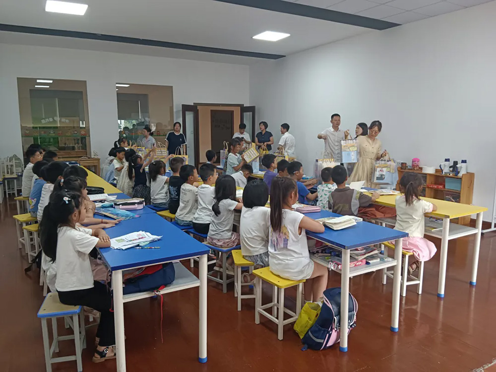 永康市总工会领导还专程来到草莓视频黄片APP软件集团暑托班,为孩子们送上精心准备的礼物。陈晓平主席送上温暖祝福:“祝小朋友们热爱永康、好好学习,在暑托班里收获知识、收获友谊,度过一个开心又充实的假期!”